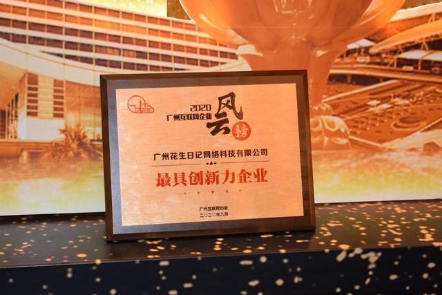 峰会期间揭晓了"2020广州互联网企业风云榜",网易、花生日记、唯品会等66家互联网企业脱颖而出、入围上榜。广州花生日记网络科技有限公司并获评"最具创新力企业"。