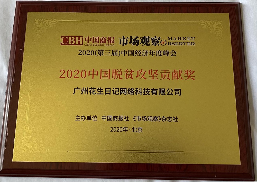 花生日记获“2020中国脱贫攻坚贡献奖”