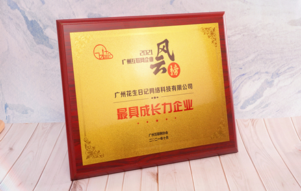 10月20日,"2021广州互联网+新经济峰会"在广州香格里拉大酒店隆重召开,广州花生日记网络科技有限公司入围并获评"最具成长力企业"。