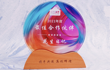 近日,电商导购头部平台花生日记获得认养一头牛“2021年度最佳合作伙伴”称号。